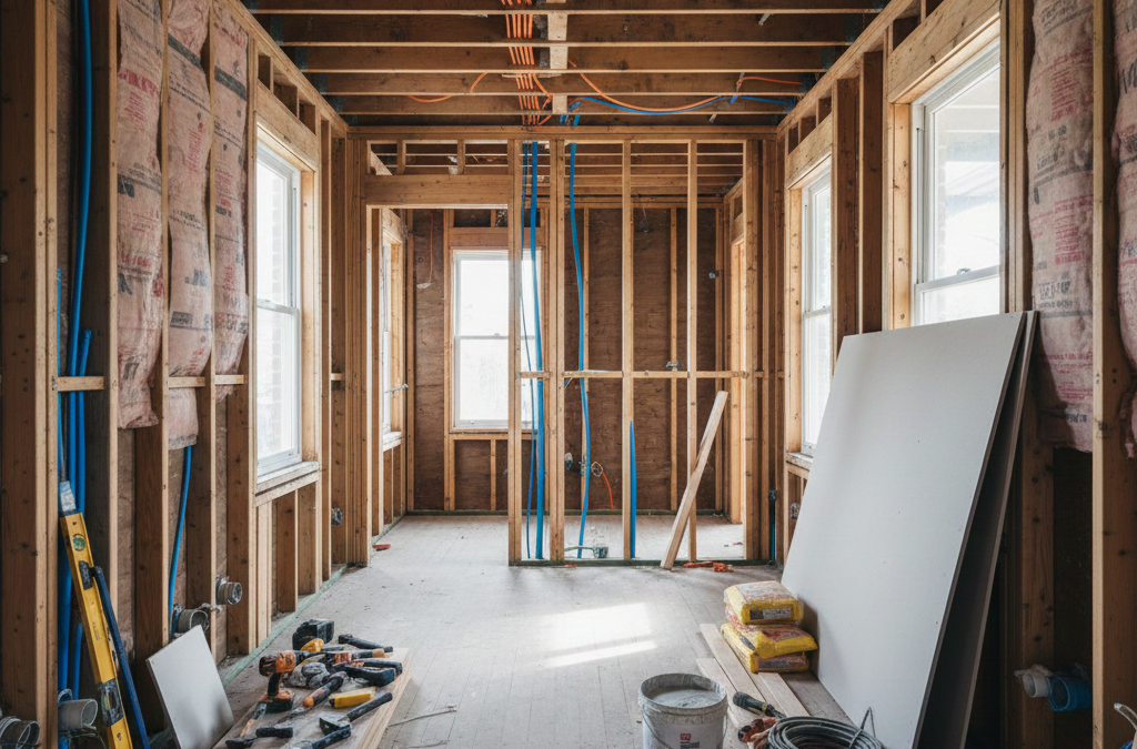 This phase requires precise coordination. Plumbing and electrical rough-in often happen simultaneously, but each trade needs clear access to wall cavities and ceiling spaces. Scheduling conflicts here are one of the most common causes of short delays in residential renovations.